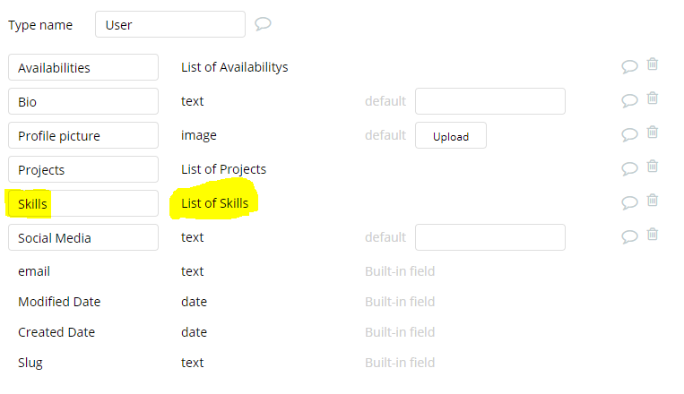 Also, I added a Skills (list of Skill) field to User: