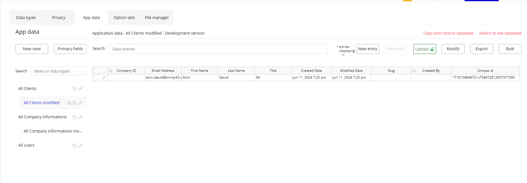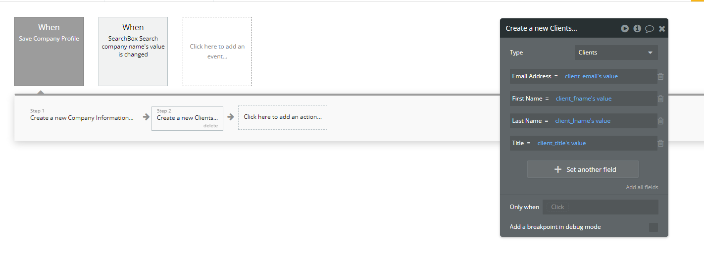 I have created a workflow that saves the company information first, followed by saving the client’s information. This works; however, I still fail to get the company’s unique ID populated in the “Clients Information” table.