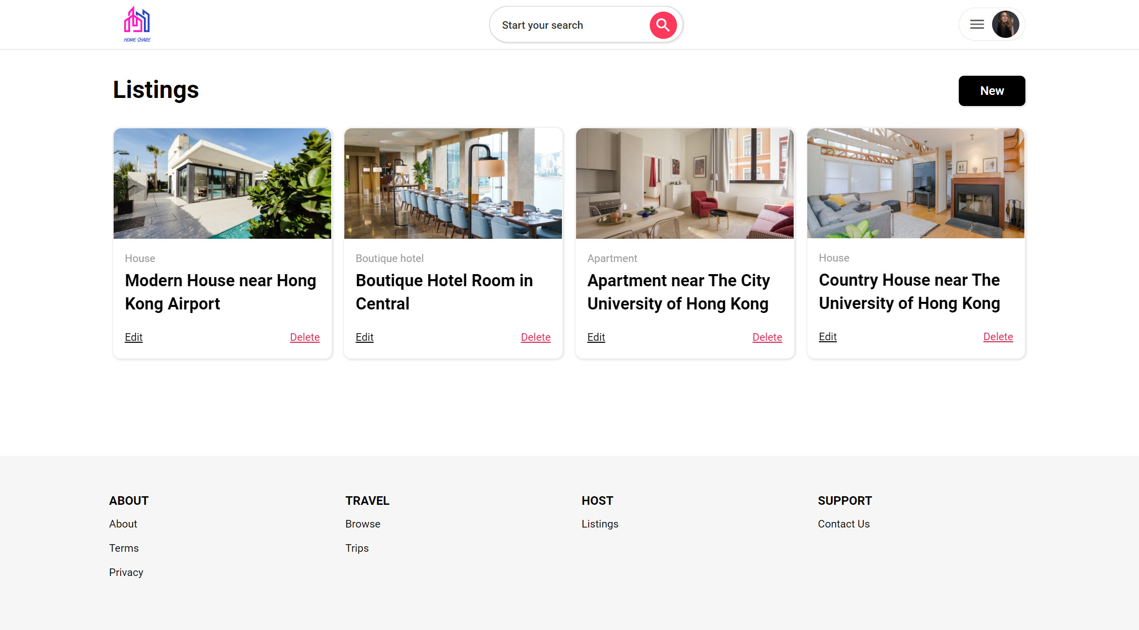 Features for hosts: Easily create listings Easily add amenities Drag-and-drop listing location on a map Listing portfolio management