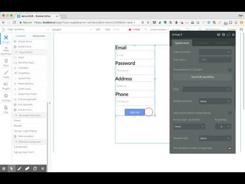 To see these hidden elements, click on them in the tree. Note that the sign-up/login popup ITSELF has hideable elements (that is, it has different layouts for sign up and login mode. Depending upon what button is clicked in the header, a workflow sets a state in the pop up to tell it whether it should be showing the login version or the sign-up version.)