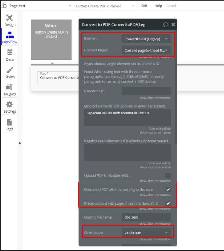 I have subscribed to Bubble Page to PDF Converter Plugin, but the ‘Download PDF after converting’ is not showing in my inspector?