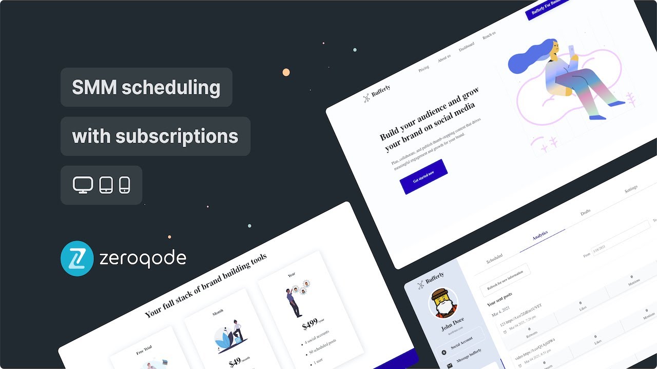 Bufferly is a content management no-code template that allows you to build tools for scheduling as well as analysing their performance across social media accounts using metrics such as likes, posts, etc. This template is structured as a SaaS product with 3 plans available - free trial, monthly and annual. Plans and payments are all integrated using Stripe. At the moment Bufferly comes with Twitter integration only but it might be possible to do other integrations as well.