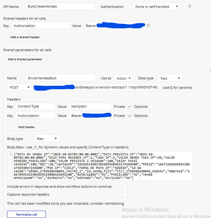 It always fails on the field “FORMA DE PGTO CP”, but the specific card (cartaoID) that fails changes every time. That’s why I believe the issue is not in the JSON itself, but possibly in how Bubble processes relationships during Bulk Create.