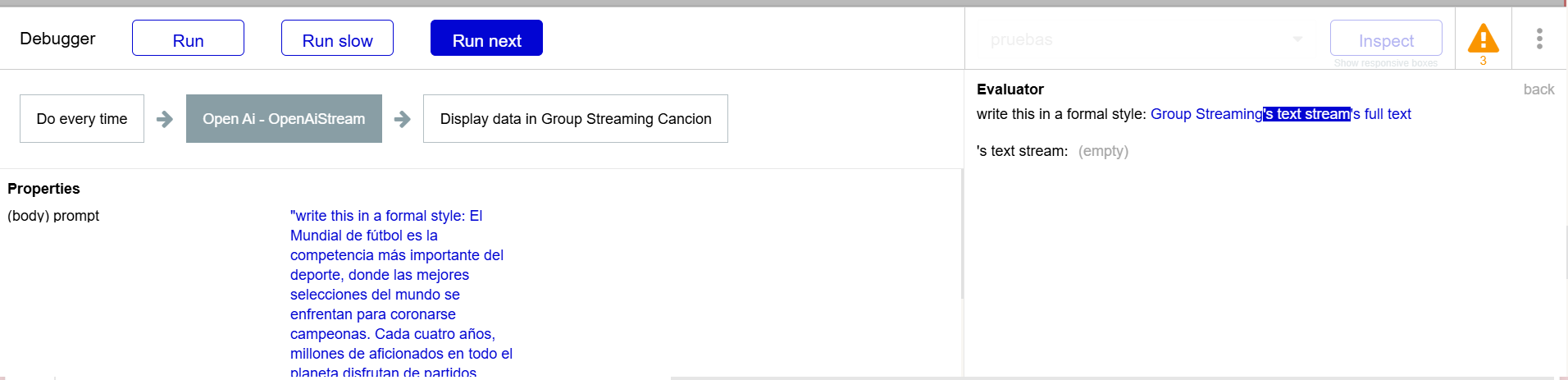 I’m chaining two text streams with Bubble’s native text stream API. After the first stream finishes, I trigger a second stream that should use the first stream’s output as its input. The problem: when the second stream starts and tries to read the first stream’s answer, that value is empty—even though I can see the first stream’s text on the page.