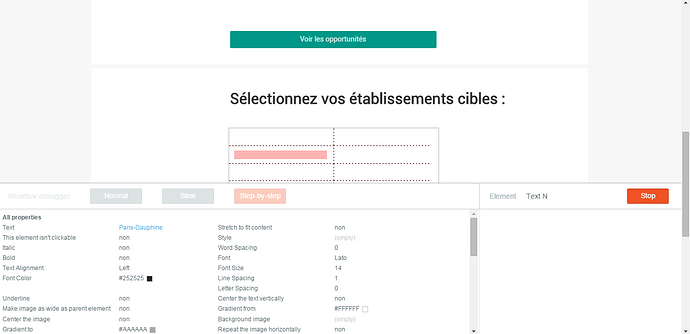 However, in the Preview, when I click on the main button “Voir les opportunités”, nothing happens.