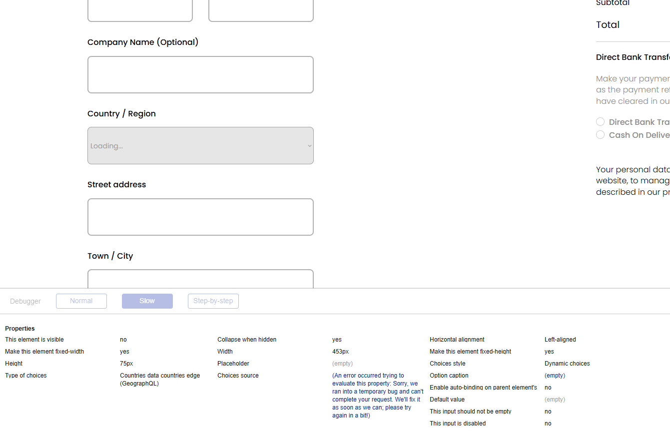 Hello @salemmo409, I am using countries and their states plugin and followed the instructions but when I previewed the page, the dropdown is not showing any names and it says loading but even after loading it doesn’t show any options and when I debug it some error has occurred. I have attached the screenshots below for more clarity.