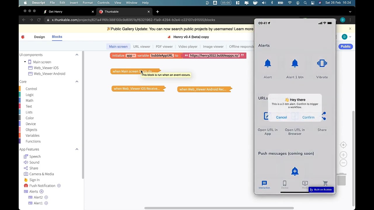 Henry is a native wrapping technology that allows you to wrap your Bubble app using Thunkable while giving you access to advanced native features directly from Bubble: