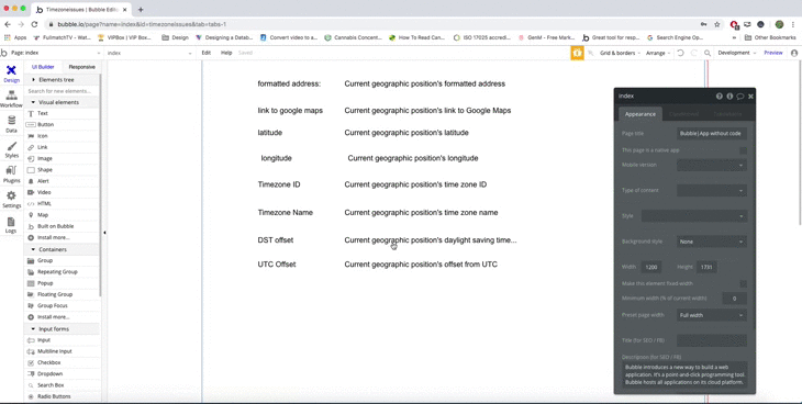 Here is a gif of what I am experiencing: as you see, nothing is showing up in the text elements even after permission to access location information is granted and the page is refreshed.