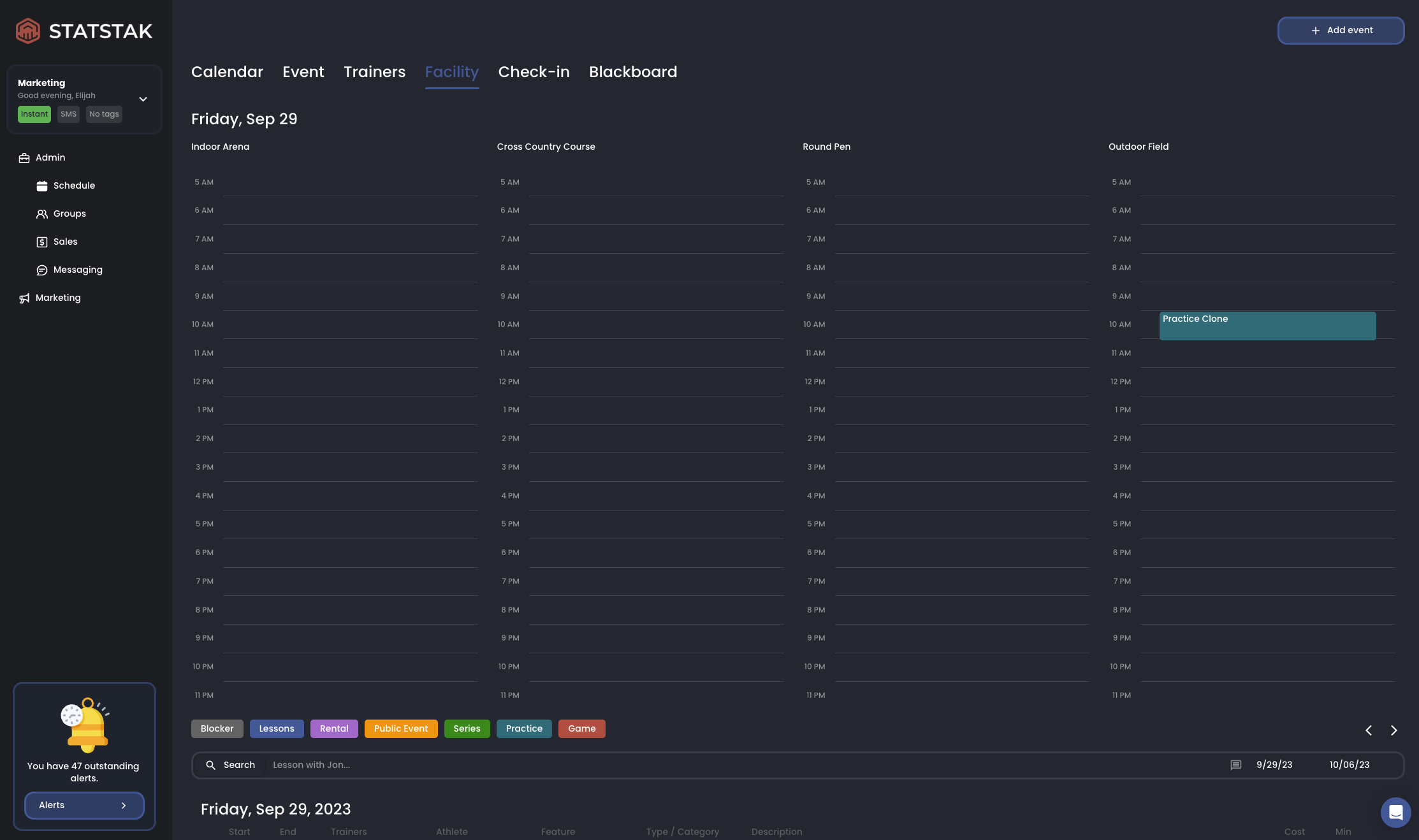 All of the ‘events’ are stored in the database and have a bunch of associations to other data in the app (trainers, features, transactions, etc.).