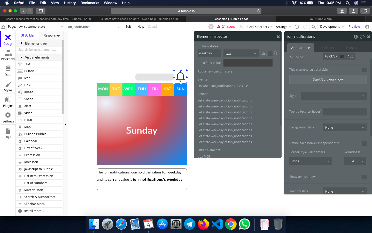 Hi, sorry for not being spesific. Do we need to set date formatting for every weekday element with custom states? How do we format each button to its spesific day that corresponding to current date? Thanks for the detail approach though. I’ve been tinkering for several days to find any solutions but was stuck with date/time features. I will try to implement the workflow when I get back to my computer. Thank you.
