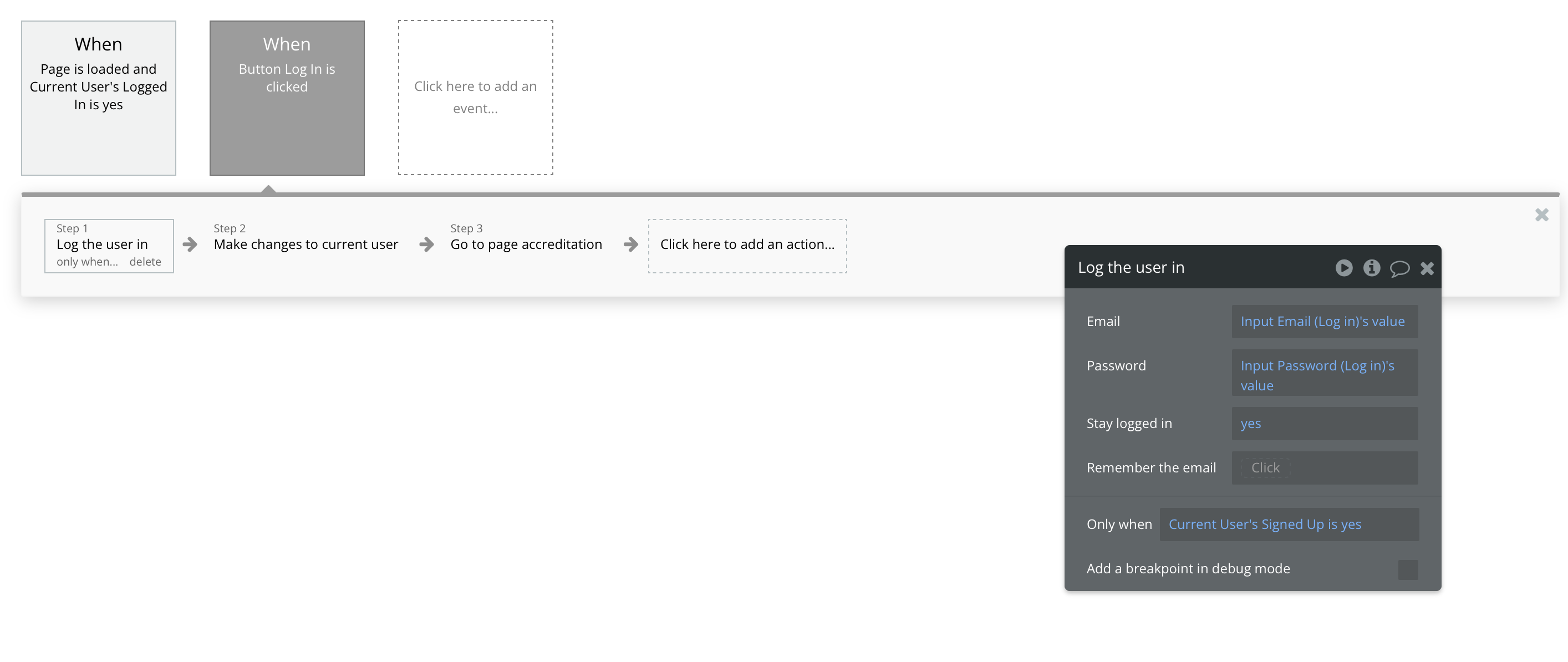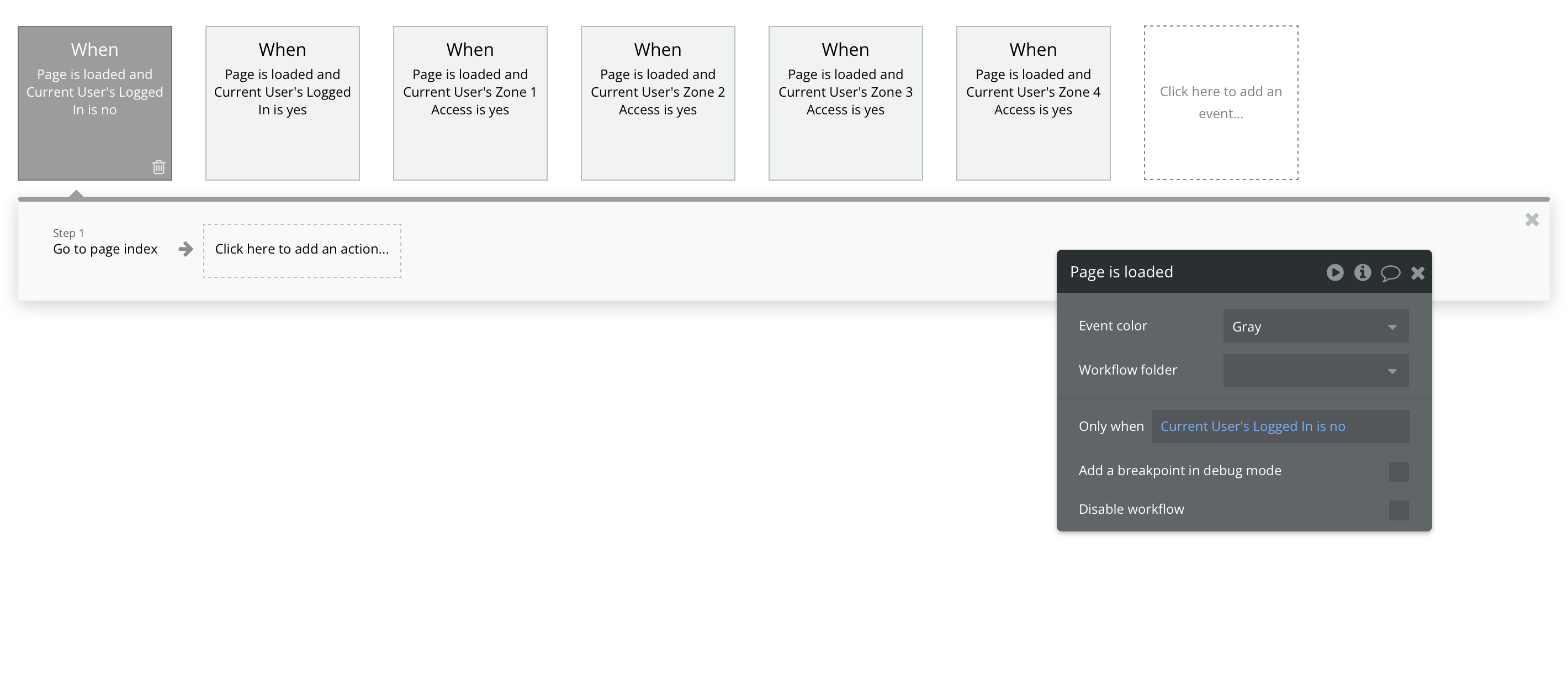 Since I’ve added "when page is loaded and current user's logged is no" - "go to page index"