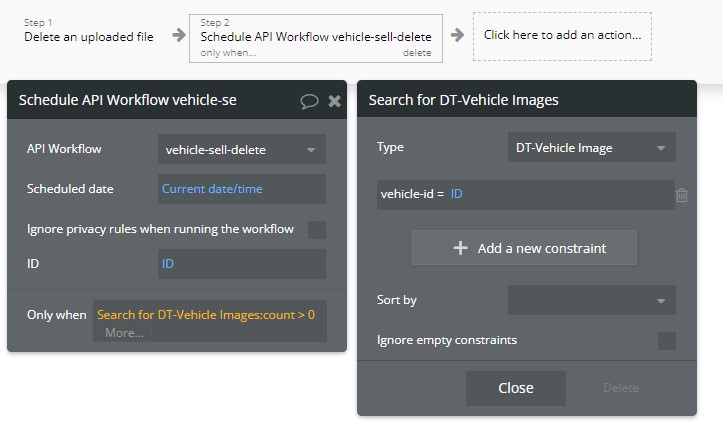 I have to delete a listing or a project which contains several images. I have to delete images before I delete the project. And I guess I have to do this in Backend. And I’m stuck deleting files.
