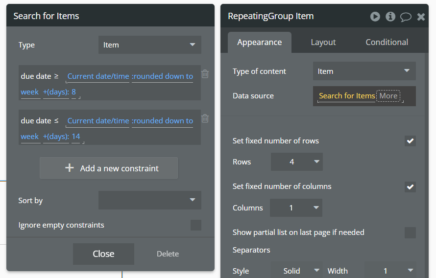 I’m trying to show items that are due next week, where next week is the next closest Monday - Sun period.