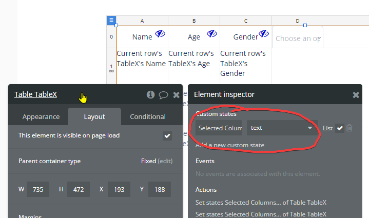 ah i see, i was looking at it the wrong way creating a blank table to add to, rather than build a hidden template and reveal each column with custom states. ill give this a try!