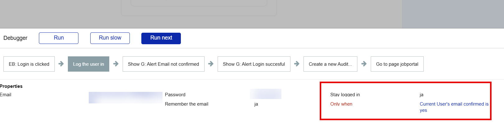You never want to have that condition anywhere on the front end. That would mean you would need to expose those fields publicly for it to work. Also, an email only needs to be confirmed once. Maybe you are wanting to do a magic link instead? So they have to login with a click in their email for security?