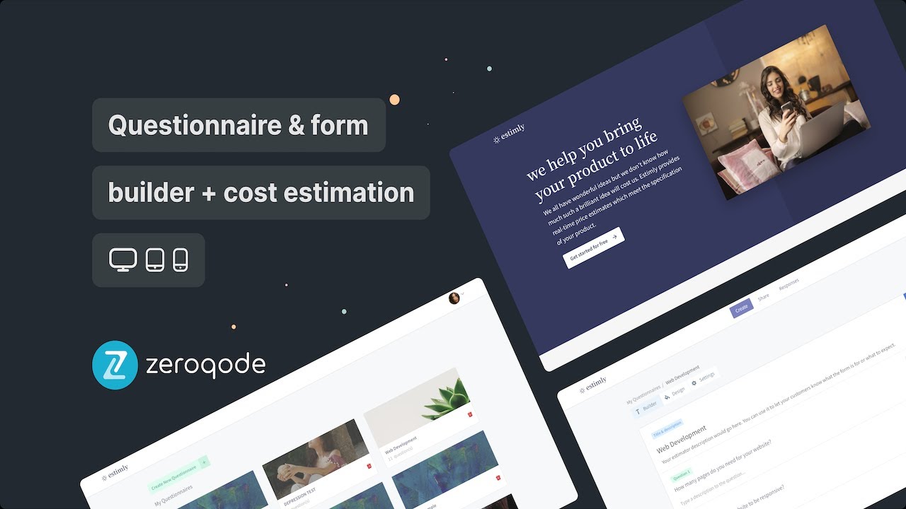 Estimly - is a template that allows to create estimation questionnaires or various kind of forms. While building questionnaire templates you can map a certain cost to each possible option in each question as well as build a custom design. Once you create the Estimation template you’ll get a link that you can share with your users so they could estimate how much a certain service or product would cost them. This for example can be used for web . development agencies so that their users could estimate costs of building a website, or let’s say a consulting company and for many other use cases: