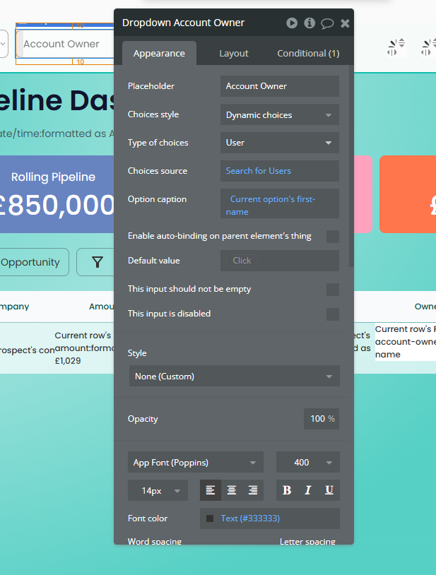 In short, I’m building a CRM and hacving some trouble displaying and filtering the ‘pipeline’ section by the Account Owners first name. Here’s what’s curently happening: