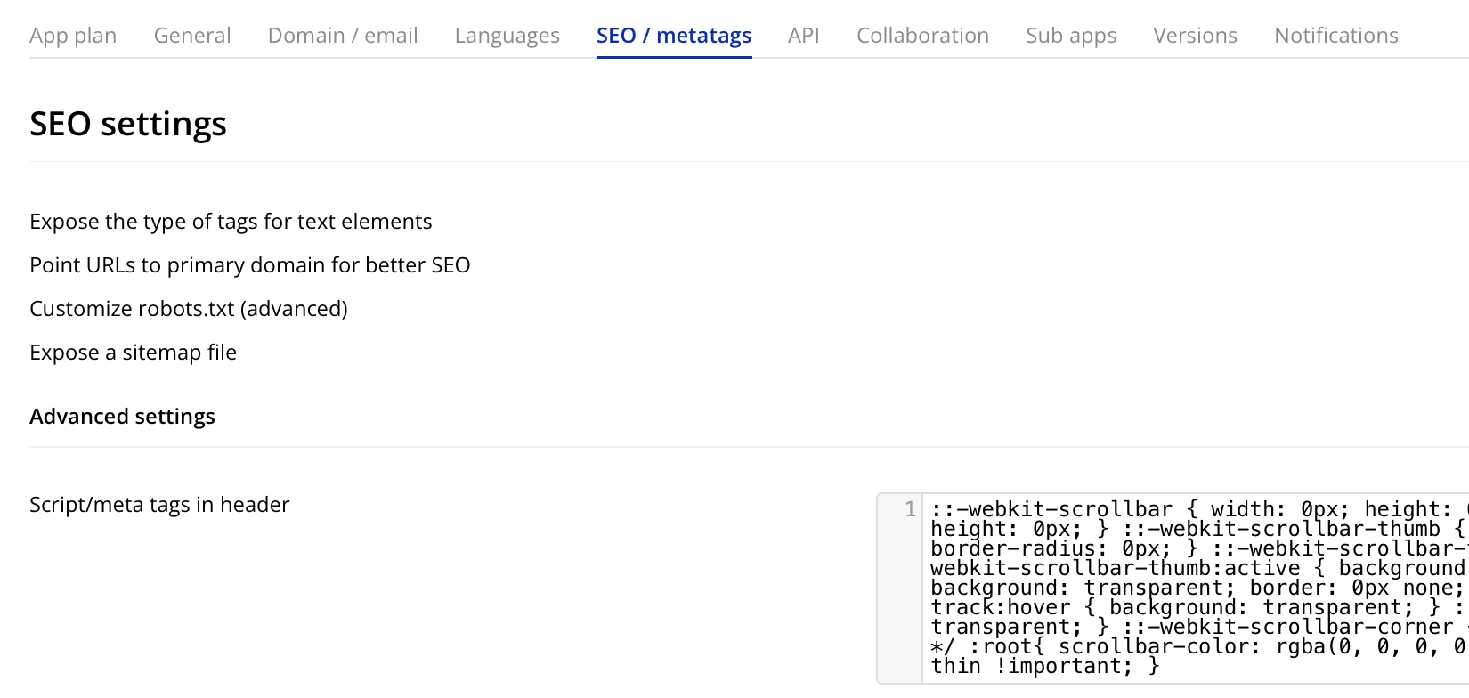 Go to: Settings - SEO/Metatags - Script/Metatags in header.