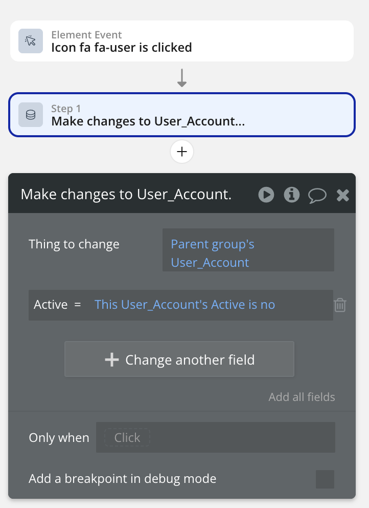 I have a repeating group to display a features group. That is working, but I want to add the ability to click the icon to add/remove the item.