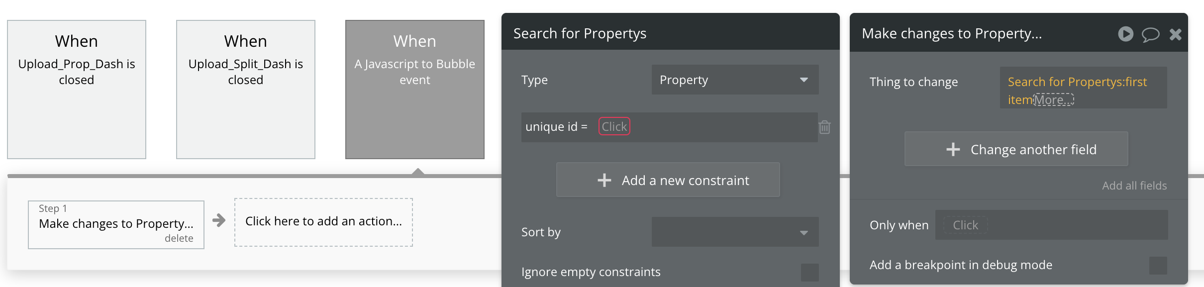 If I set that up in a JavaScript to Bubble event, I should be able to make changes to that specific thing I was creating in the workflow, I’m just trying to figure out how to appropriately filter it with constraints: should I use unique id or created date (since it would match for the thing that was created at the time the event was triggered)?
