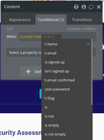 A number of videos I’ve watched show the option to do something in the app if the user is logged in. This is important for what I’m building, but I don’t see the condition “Is logged in” as an option in my editor. I only see “Is signed up”. Is there something I’m missing?