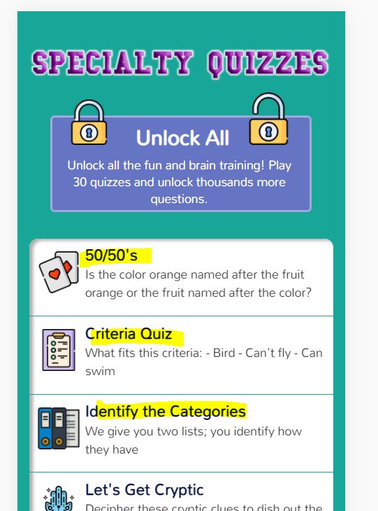 I have uploaded a screenshot of the page I am creating which uses a repeating group which takes data from a database labelled ‘All Specialty Quizzes Pages’. When a quiz is clicked I would like a relevant question to appear which will retrieved from a database called ‘All Premium Quizzes’.