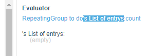 In this case the repeating group’s list is going from item 0 to 13, and its count is 15
