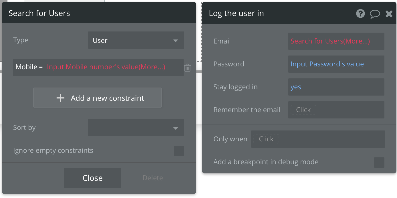 Can you suggest a workflow to login with mobile no. & pwd. How to fetch a email id with mobile no. & validate it?