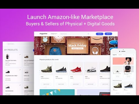 We have just published a responsive template that replicates Amazon’s main functionality, that is brings buyers and sellers together. It allows selling both physical and digital goods, the template integrates Stripe for split payments, allowing the platform owner to keep any commission.