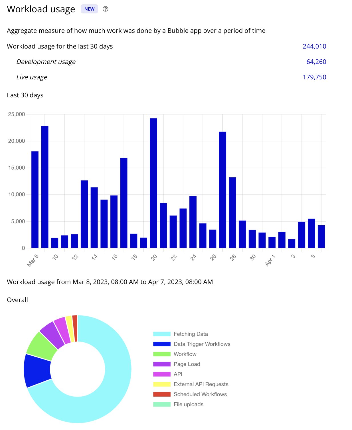 Maybe with a smaller database in development, workloads like searches and database edits will cost less? That’s why Bubble has to really break down the workload concept and demonstrate with relevant examples to convince users.