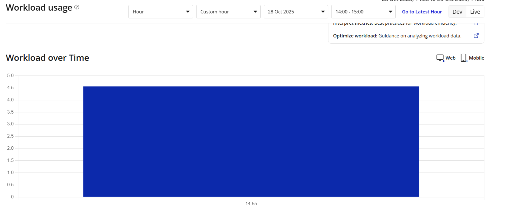 - When Web & Mobile is selected, all workload used by the apps in the project will be displayed in the charts
