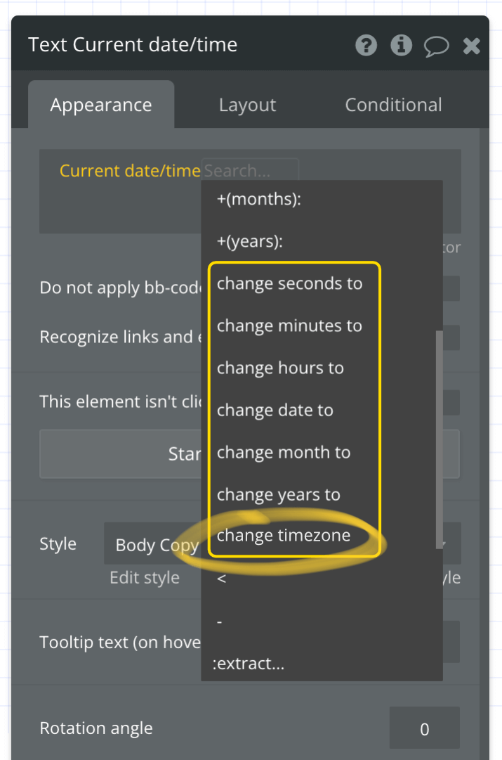 Interpret / format the date in a timezone of choice. This does not alter the underlying timestamp. The date still represents exactly the same moment in time, but the local time will be different. Bubble has always had this ability with the
