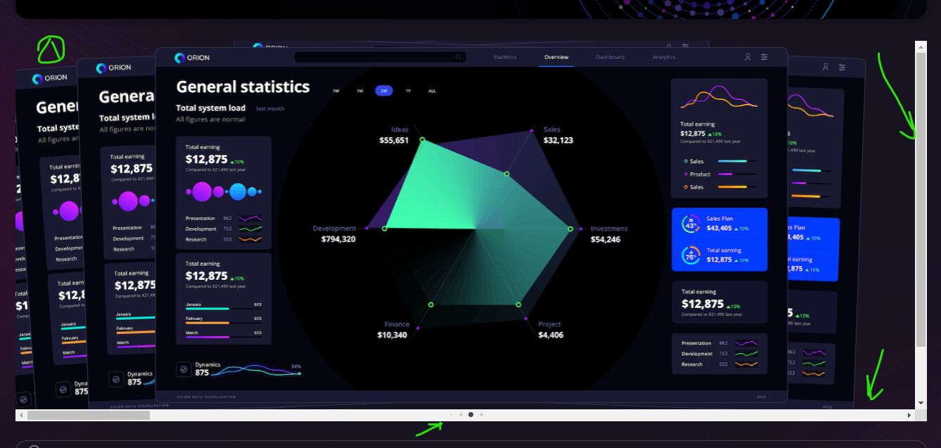 Full Navigation Control: Plugin comes with all required built-in navigation elements, such as Pagination, Navigation arrows and Scrollbar