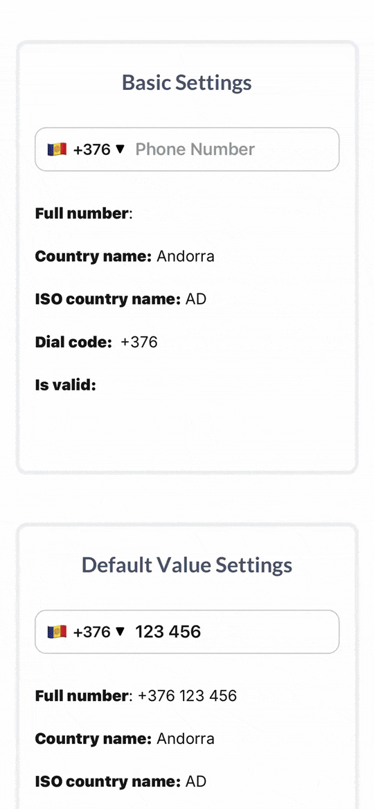 - Validation States: Instantly detect whether the entered phone number is valid.