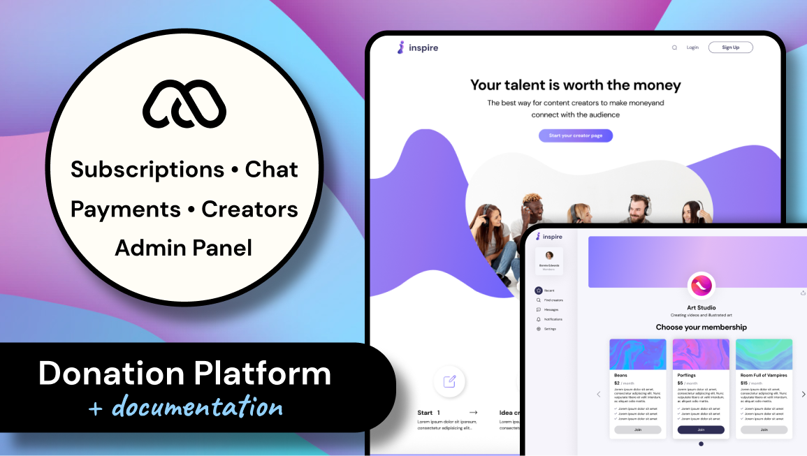 Hi everyone! Let me introduce you to Inspire Template β a robust creator-subscription platform, similar to Patreon, built to help creators monetize their work and strengthen connections with their fans.