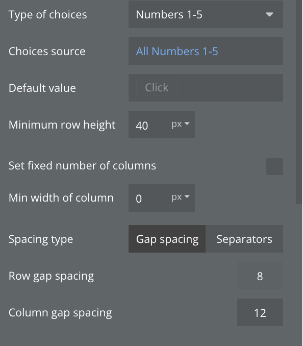 But to get it to center, I have to check it, which means that I’ve had to make the choice to hardcode each question. I much prefer to make forms be completely dynamic, where there’s a Question Data Type which can be any input type and can have an arbitrary number of options to choose from. This means that questions can be easily updated or I can even build an admin tool for users to make their own forms.