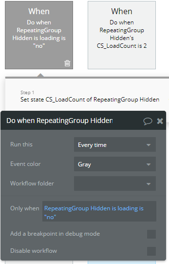 Create a custom state on your repeating group, type: Number, mine is named “LoadCount”.