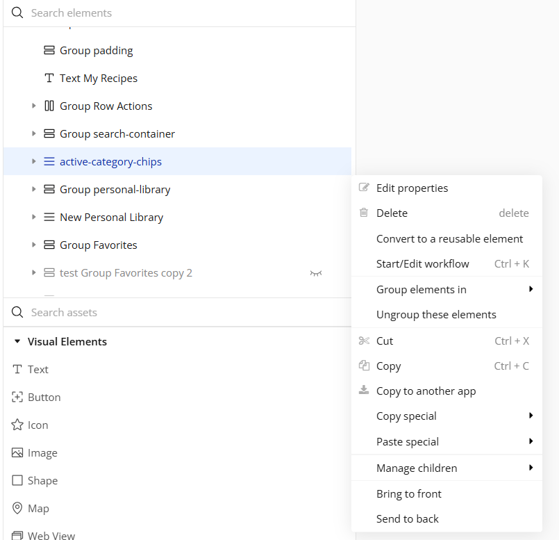 I’m still getting the hang of where things paste and I was clicking something that wouldn’t work for a paste. If something is pasted into a container, the new item goes to the bottom of the container. But if you’re pasting text and you click on a text and click paste, it pasts right beneath the text you clicked. Apparently if you are pasting a repeating group, you cannot click a repeating group to have it paste immediately beneath it. You have to click on the group you want it in, then drag it where you want it. It seems a little erratic and I’m still figuring it out. Got it wrong this time.