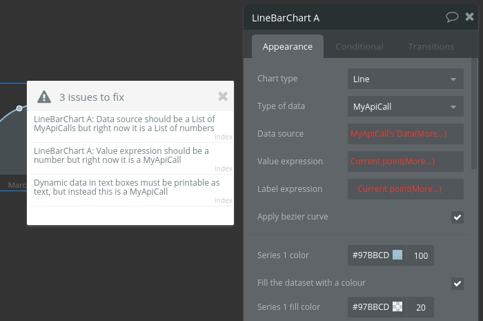 I am trying to plot data that my api connector returns using the Chart plugin, but have datatype issues. I don’t clearly understand how data is being handled.