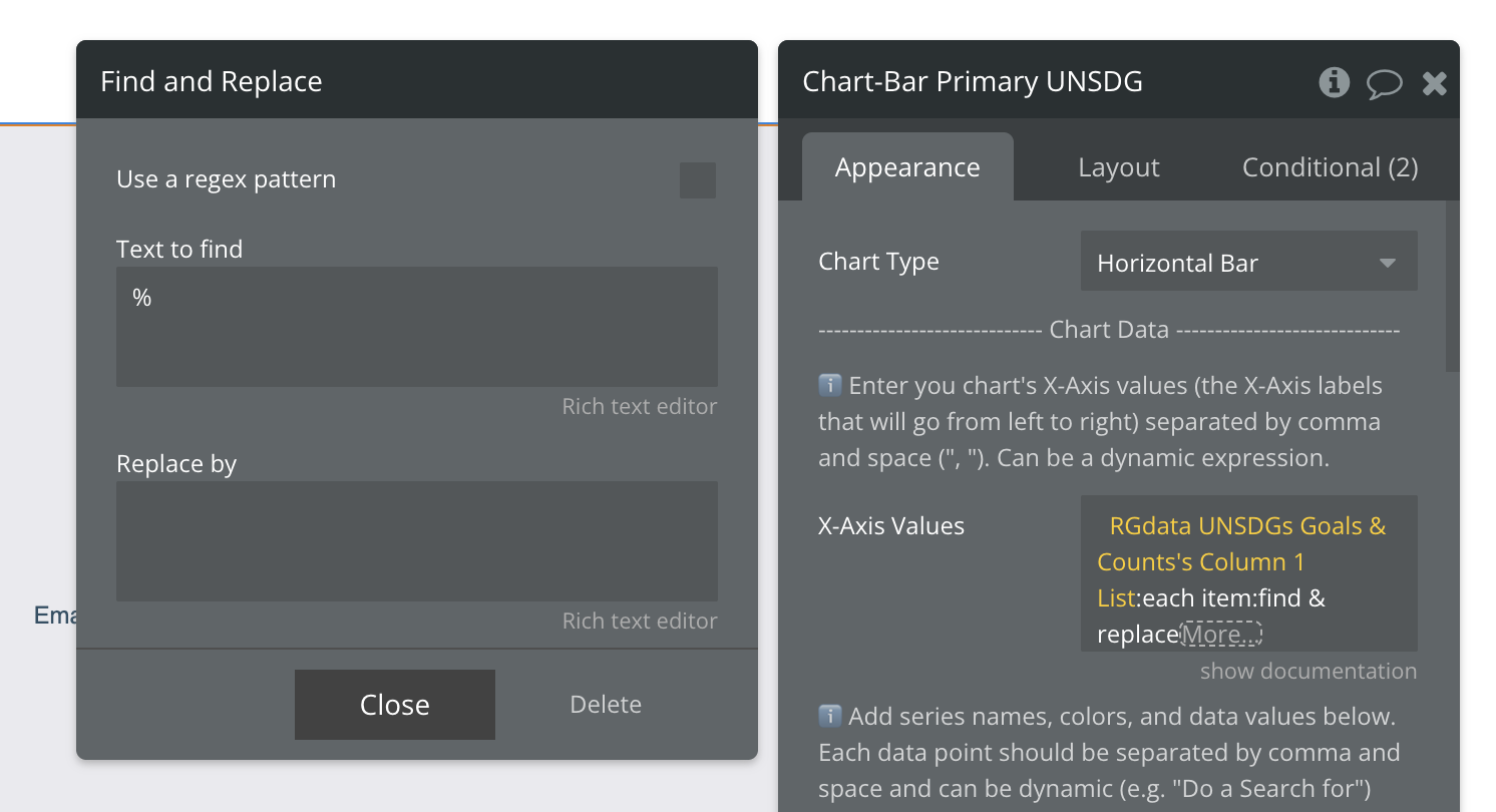 Hi, I’m struggling with displaying dates on the X axis in a way that allows me to pass a date clicked into a workflow so I can show a drill down chart filtered by that date. I’m pulling dates from a repeating group on my page. When I format them as mmm dd, everything displays fine in the chart, but I can’t pass the date value to the workflow because Bubble treats them as text. When I display the dates in their native format, the x axis gets messed up, I think because Bubble is storing the dates with commas in them (like August 12, 2024), so the chart is treating the commas as separators. Is there a way to show dates on a chart as “real” dates (not formatted text) so they can be passed to workflows for click through events? Thanks!