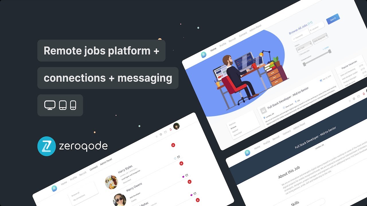 Candidates can search for open jobs, create their online CV profiles, apply for jobs and connect with others. Recruiters can post jobs, search for qualified candidates using skill filter. The template also features messaging between users.