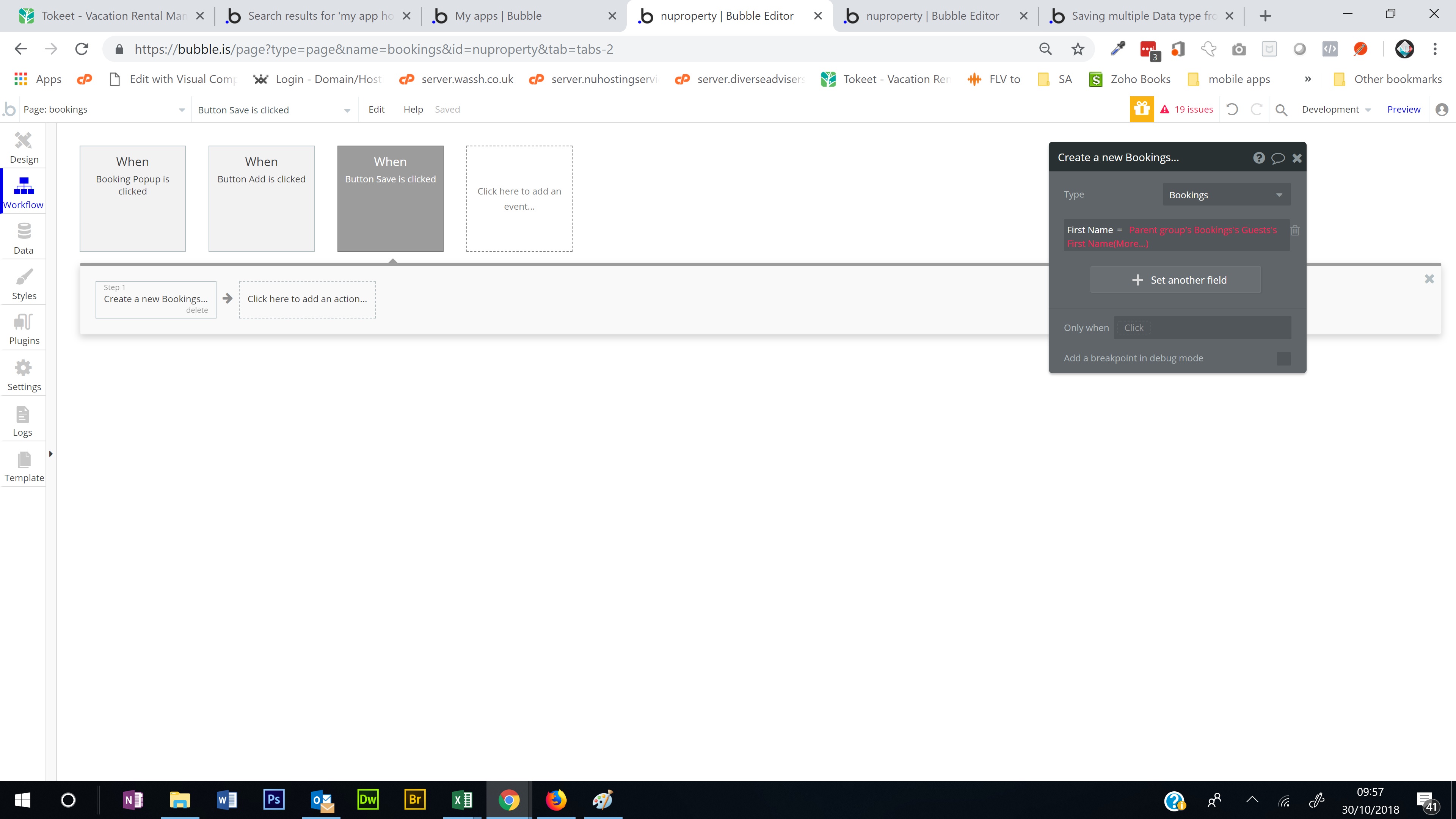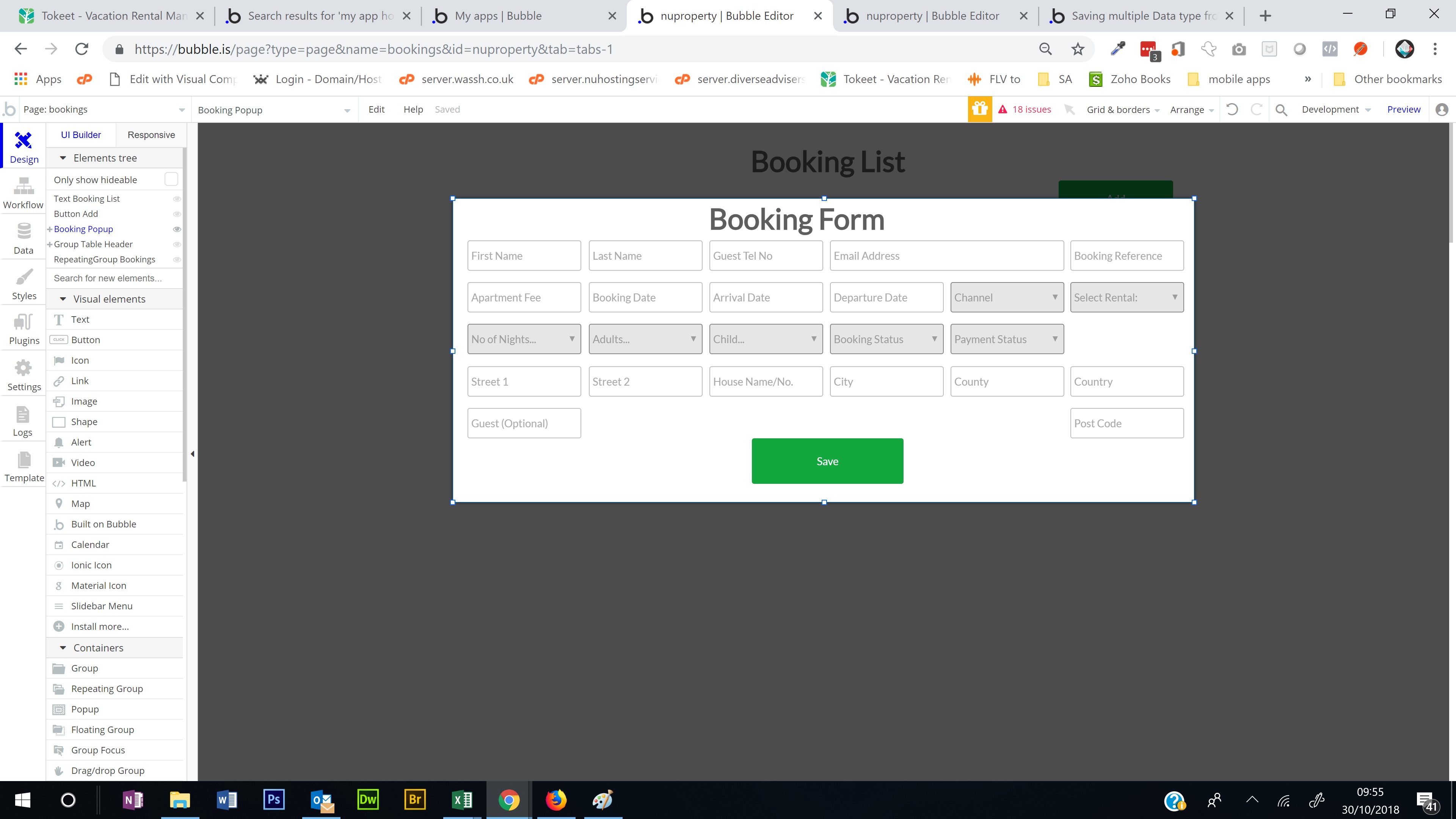 I have created a booking form with above input fields and a save button to save the bookings in booking data form and guest details in guest data type and property and apartment is dynamic drop down field.
