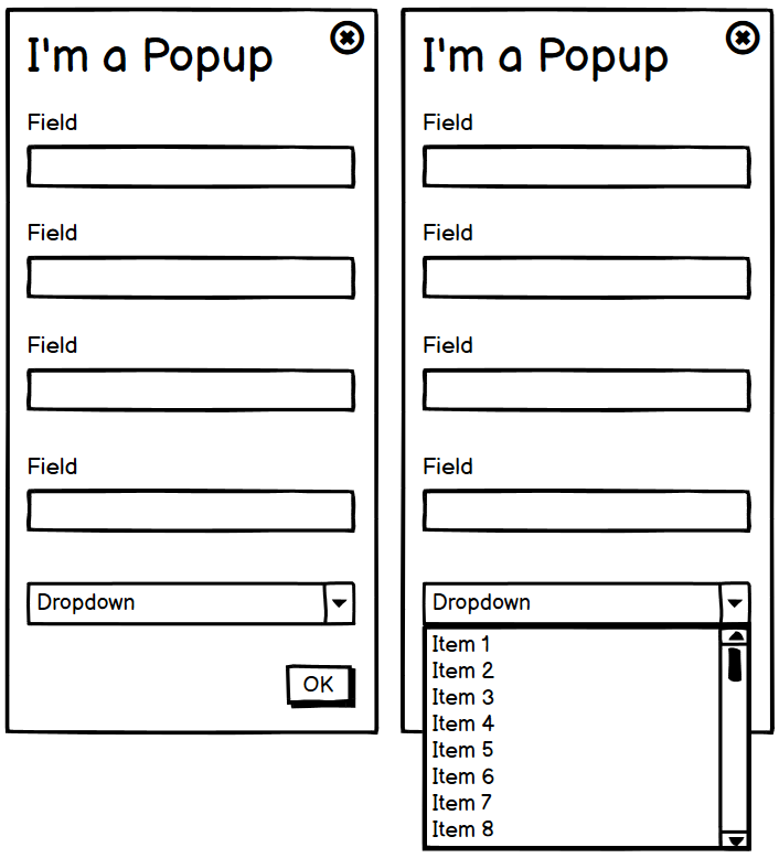 Generally, when you open a popup, you can scroll the page only as far as the bottom of the popup. Problem is, if you have a dropdown on the bottom of the popup, that extends below it when open, it gets cut off with no way to scroll to the end of it.