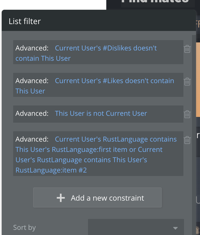 I’m building an app with two main features: matching users together and matching users and “places” together. I give you a screenshot below, it’s always nicer: