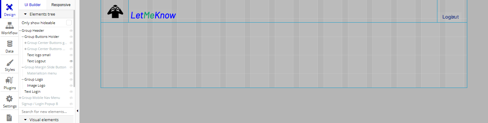 My login and logout text are in the same space on the right of the screen but in the element tree you can see they’re not in the same group so they can have different conditions.