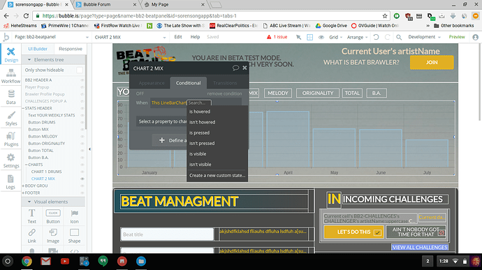 In the first screenshot, you are setting a custom state on the element Chart 1 Drums.