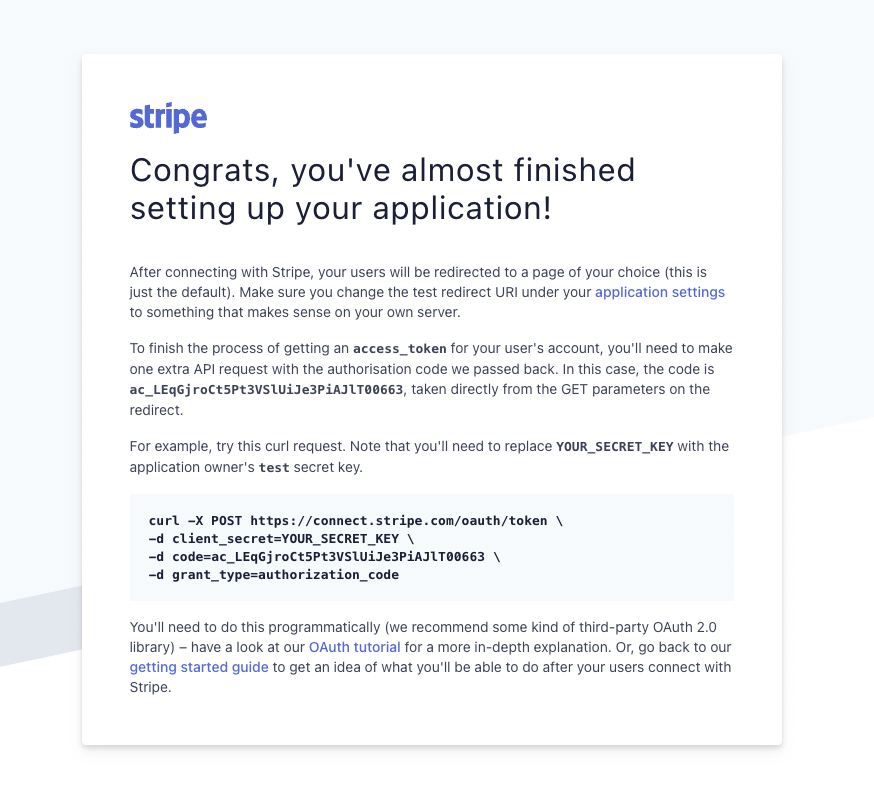 Rather than wait for Bubble I run a workflow on page load that checks for poststripeauth in the URL and then grabs the code from the URL … and does the token exchange you posted above.