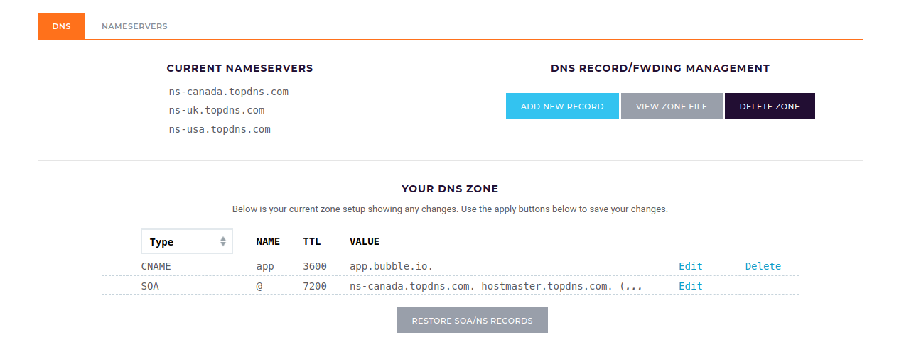 No. Under alias enter @ then under Canonical Name enter app.bubble.io