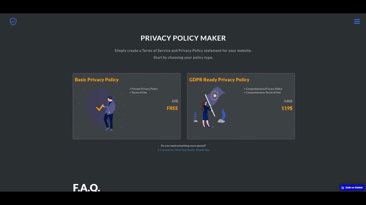 - With advanced admin dashboard; track sales, see user statistics, edit policies, edit packages, view user forms, edit frequently asked questions.