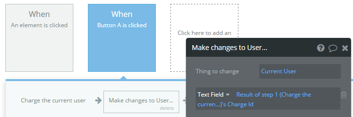You can then reference ‘Result of Step 1’ to save the Charge ID from Stripe in the Shoe Purchase data (recommended if you ever want to allow Refund actions through your system)